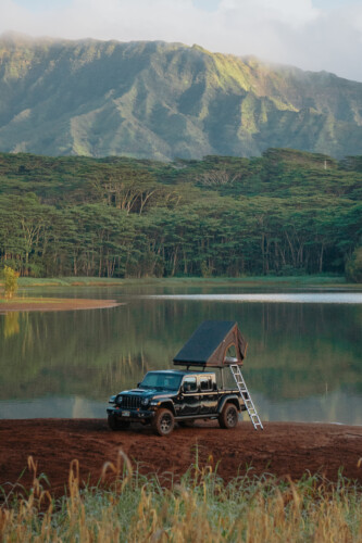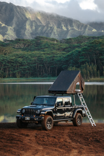 Aloha! This is a perfect 2-in-1 experience unlike any other to explore the island! Enjoy Kauai’s most authentic way to visit with one of the only outfitted Jeep Gladiator Mojave’s on island! After booking, we offer a hand crafted guidebook that we created from years of experience and exploring the island of Kauai. The guidebook includes camping locations, as well as recommendations for food, hiking, and excursions! You’ll be riding and camping in style with the 4WD, lift kit, and 33 inch wheels. Our space includes all necessary camping gear and supplies, as well as a hard shell roof top tent with a comfortable mattress to sleep on! Must be 21 to book!