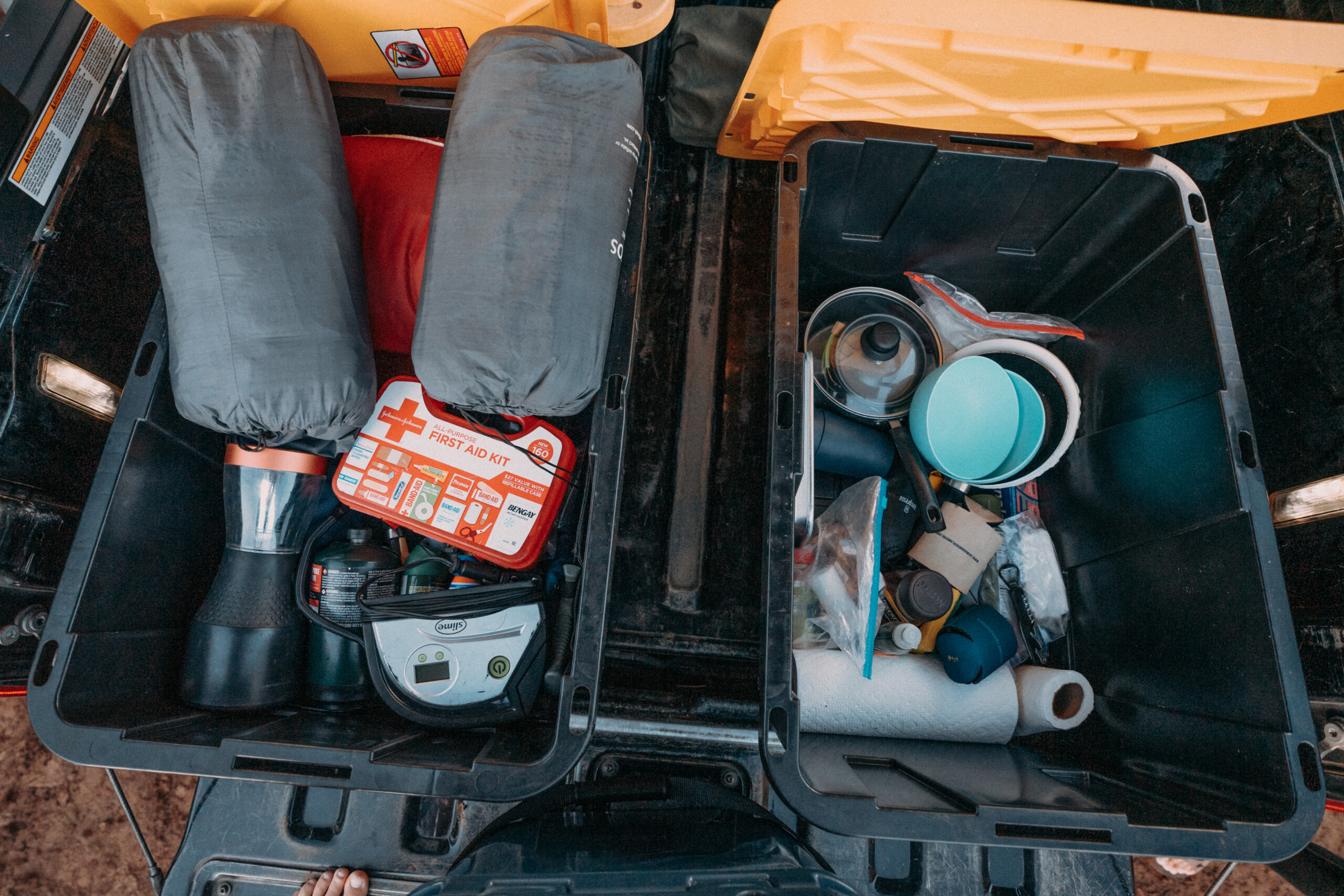 The vehicle comes fully stocked with everything you need for the perfect camping trip, from a Yeti cooler and full kitchen setup to clean sleeping gear and an extra ground tent. We also offer portable camp showers upon request. A full list of included gear is below.
